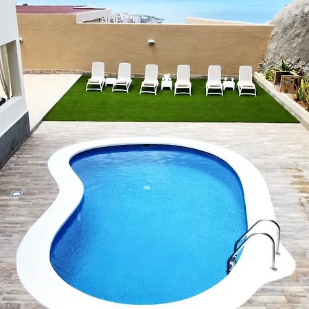 La Luxury Villa Masca Private Heated Pool Free Car Except Christmas Costa Adeje, situada a 20 minutos a pie de Aqualand, cuenta con una terraza con vistas al mar.